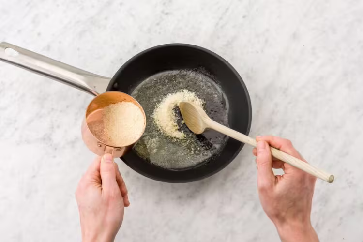 Make the panko crust: In a medium pan, melt 1 Tablespoon butter. Toss the panko into the melted butter and season with salt and pepper. Transfer the panko to a plate and wipe out the pan.