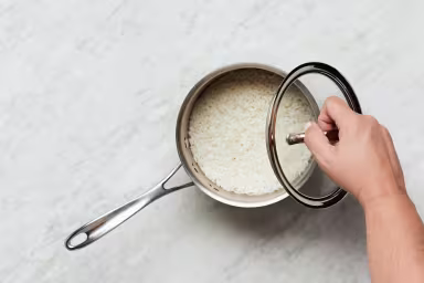 • In a small pot, combine rice, 3⁄4 cup water (11⁄2 cups for 4 servings), and a pinch of salt. Bring to a boil, then cover and reduce to a low simmer. Cook until rice is tender, 15-18 minutes.