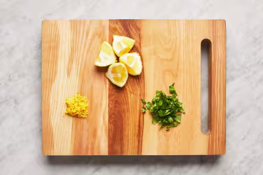 • Zest and quarter lemon (for 4 servings, zest one lemon and quarter both). Roughly chop cilantro.