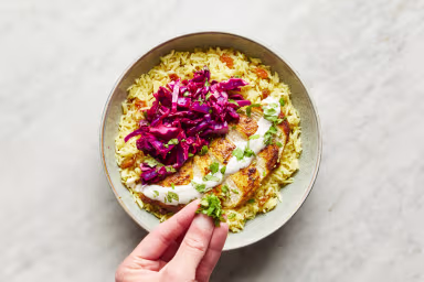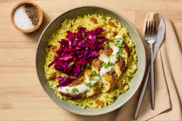 Sometimes you just need a little curry to spice up your week—and for those times, our chefs have your back. Tonight, they spiced up not one, not two, but THREE parts of this meal with curry spices: curried chicken, curry rice with golden raisins, and lemon curry sauce. Together with pickled red cabbage, these curried chicken bowls pack flavor into every bite.