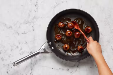 • Drizzle sweet soy glaze over meatballs; stir to coat. Cook until sauce is warmed through, about 30 seconds. Remove from heat.
