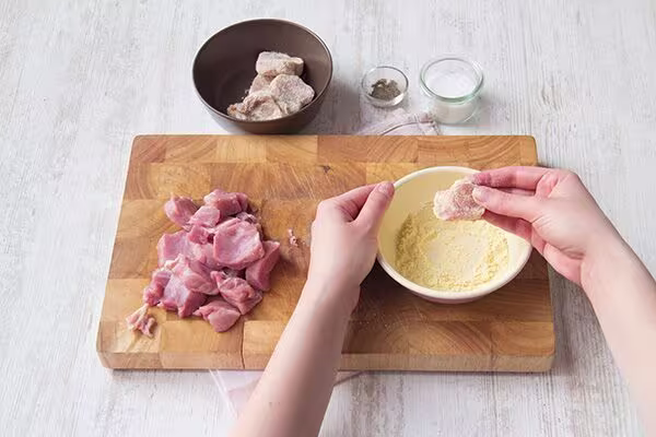Cook the pork: Thinly slice the pork into strips and season with salt and pepper. Heat a large drizzle of oil in a large pan over medium-high heat. Working in batches, add the pork to the pan and cook for 1-2 minutes per side, until browned. Remove from the pan and set aside.