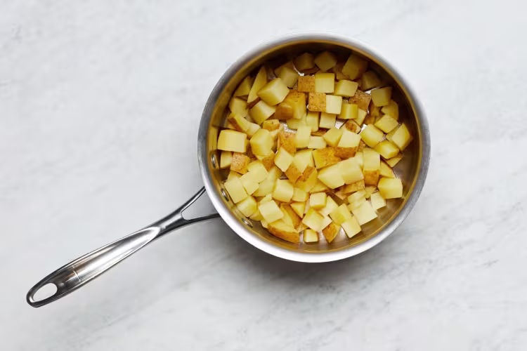 • Adjust rack to top position (top and middle positions for 4 servings) and preheat oven to 425 degrees. Wash and dry produce. • Dice potatoes into 1⁄2-inch pieces. Place in a medium pot with enough salted water to cover by 2 inches. Bring to a boil and cook until tender, 15-20 minutes. • Reserve 1⁄2 cup potato cooking liquid; drain and return potatoes to pot. • Meanwhile, cut broccoli into bite-size pieces if necessary. Zest and halve lemon.