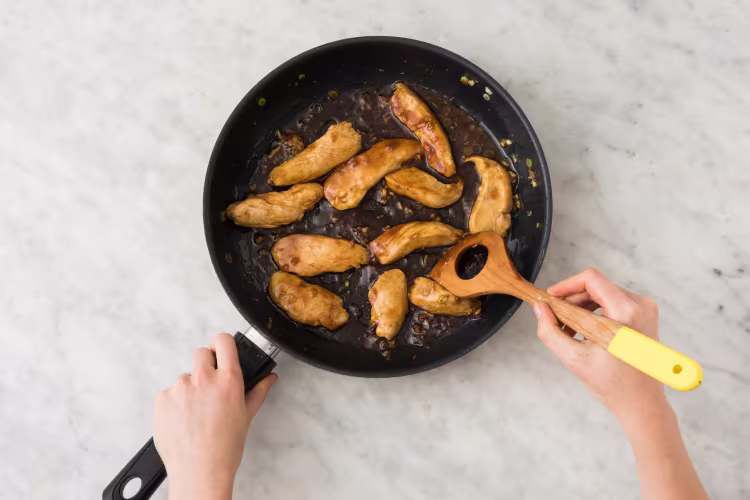 Heat a large drizzle of oil in a large pan over medium-high heat. Pat chicken dry with a paper towel. Add to pan and cook until browned but not cooked through, 2-4 minutes per side. Remove from pan and set aside. TIP: Don’t overcrowd the pan with chicken—you may want to work in batches.