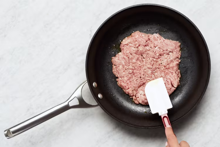 Break up meat into pieces and continue cooking until pork is cooked through, 1-2 minutes.