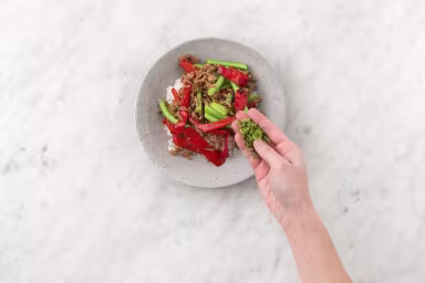 Wash and dry all produce. Trim and halve green beans. Peel and mince ginger. Mince or grate garlic. Trim scallions and cut into 1-inch pieces. Core, seed, and thinly slice bell pepper. Pick leaves from mint and coarsely chop