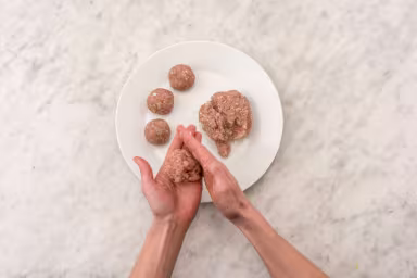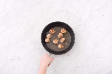 Heat a drizzle of oil in a large pan over medium-high heat. Add meatballs and cook, turning occasionally, until browned all over, 2-4 minutes. Pour ¼ cup water into pan, cover, and let meatballs steam until nearly cooked through, 2-3 minutes. Uncover, reduce heat to low, and let water evaporate.